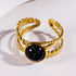 Hackney Nine MALAYA  Cross Over Stacked Ring with a Black Turquoise Stone Centrepiece
